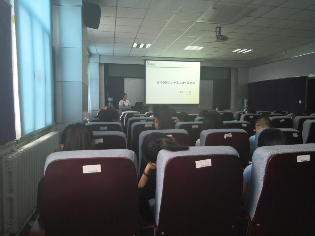 紧接着,李梦同学对马克思主义理论进行了阐述,让大家对马克思主义理论有了进一步的认识与了解。然后,闫守萌和张意同学对马克思主义的实践和中国化进行了详细深入地讲解,使得在场同学们更加科学、更加准确地把握马克思主义的内涵,并且深刻领悟到在学习生活中也要善于运用马克思主义理论。 活动最后,白微同学梳理了五月份国内外发生的重大新闻事件,让同学们关注热点要闻,了解时事动态。