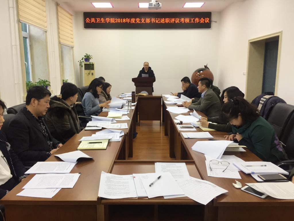 于2019年1月15日,在二楼会议室,召开2018年度党支部书记述职评议考核会议。党委委员、纪委委员、行政领导班子成员、党支部书记、党办主任参加,同时邀请党员和系科室主要负责人代表参加,会议由学院党委书记赵国利主持。