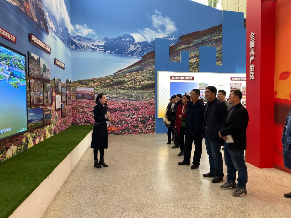 师生来到第一个展厅“在新中国站起来中艰苦创业(1949—1978)”,从政治、经济、文化和党的建设方面,展示新中国成立至改革开放30年间,吉林省作为粮食输出基地、工业基地、科教文化大省奋勇创业,为新中国蓬勃发展做出了重大贡献。紧接着,师生们沿着展线走到第二个展厅“在改革开放中奋进(1978—2012)”,通过一件件展览实物、照片和文字,展现了吉林省在党的十一届三中全会这一伟大历史转折期间,取得的成果和辉煌成就。随后,第三个展厅“在决胜全面小康中振兴(2012至今)”,从“五位一体”总体布局和党的建设方面,展现吉林省深入贯彻落实习近平新时代中国特色社会主义思想。此展厅还设有VR体验互动环节,体验者能够以不同视角俯瞰长春标志性场景,更加生动、直观地感受新中国成立70年来吉林的变化、发展和成就。