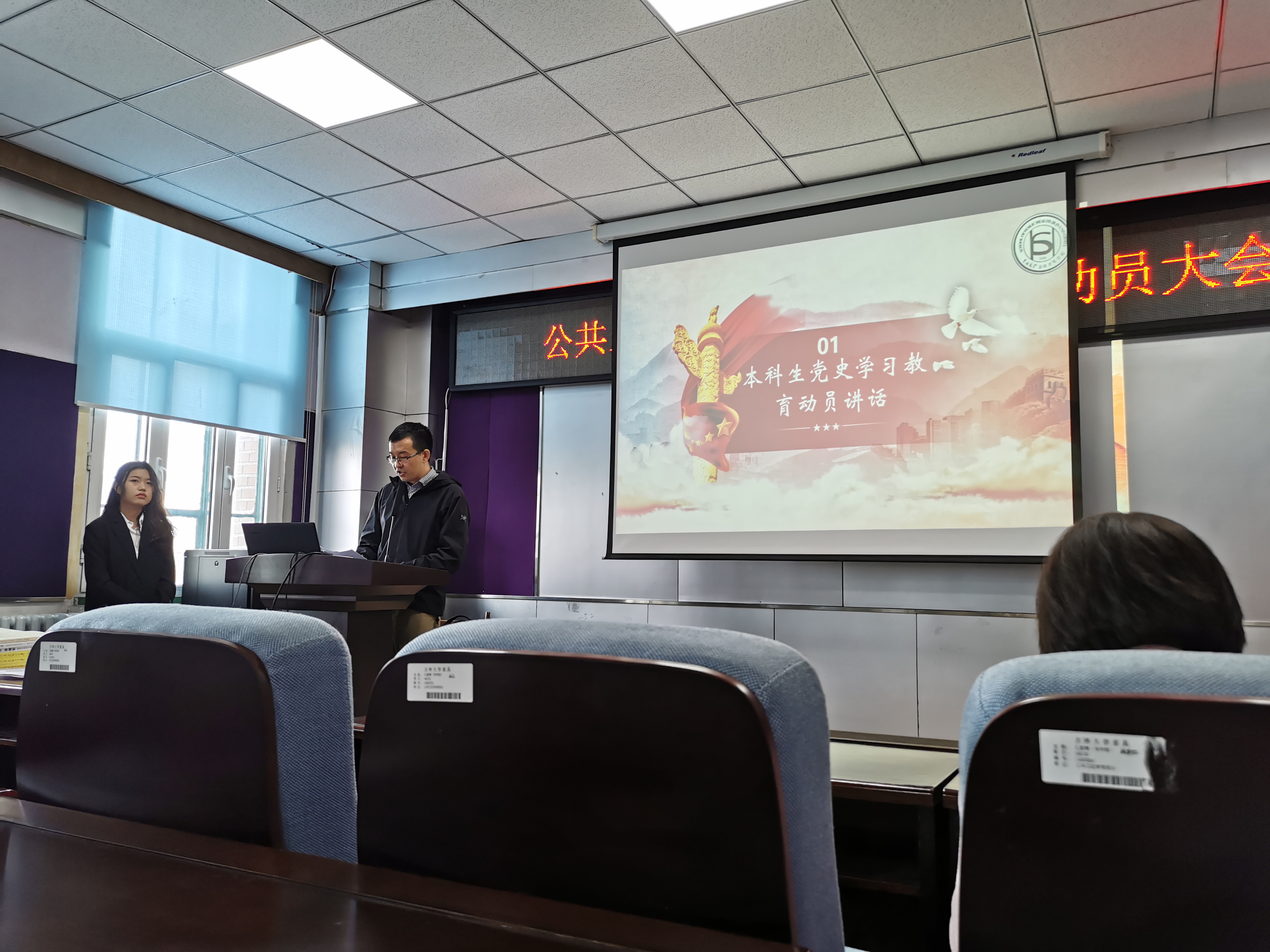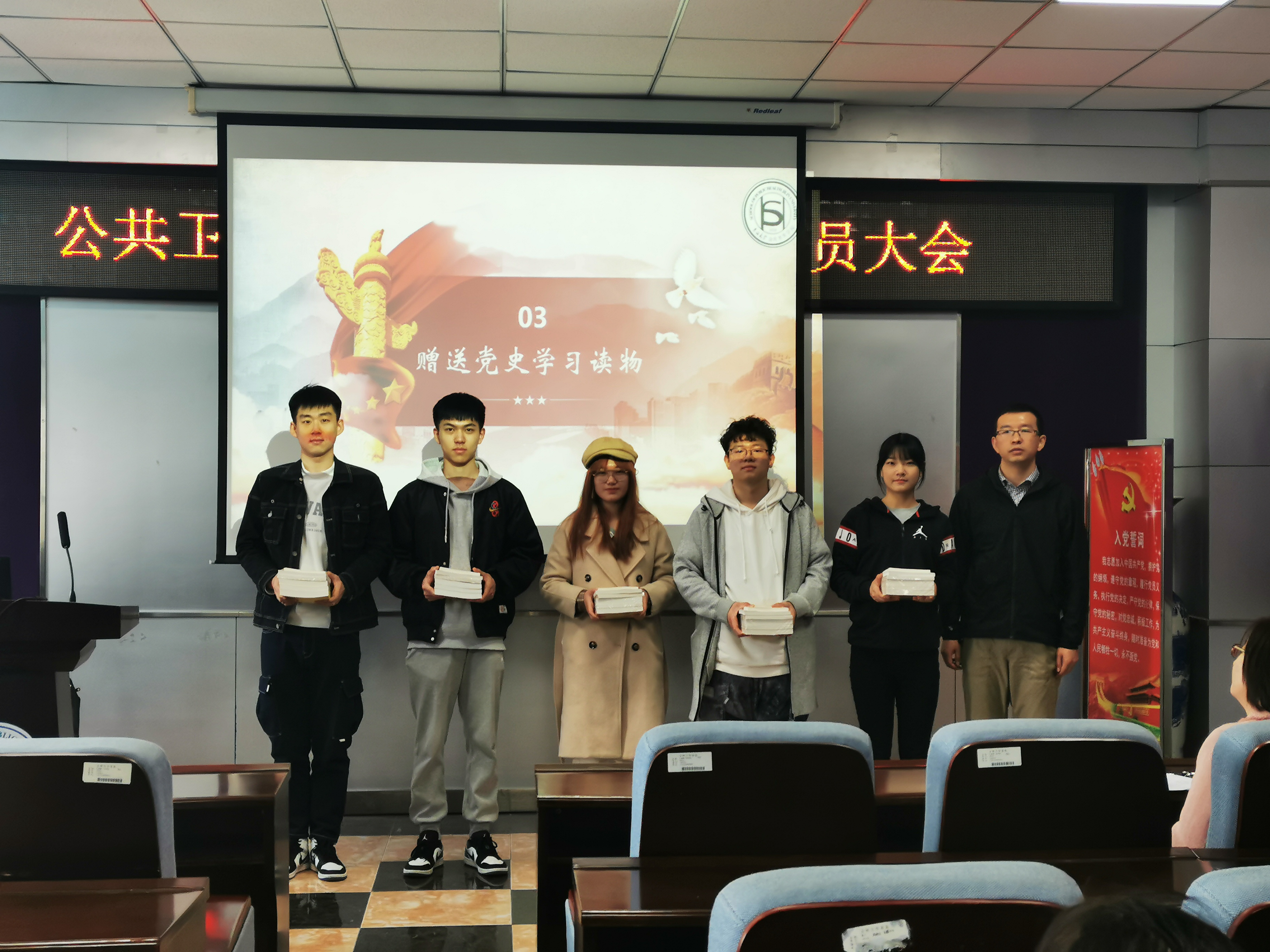 首先,苏国范老师进行了本科生党史学习教育动员讲话。苏老师谈到,中国共产党建党100周年到来之际,中共党员尤其是青年党员要担负起时代重任,为实现党的百年目标努力奋斗。要落实好党中央要求,推动党史学习教育取得扎实成效,深刻认识学习党史的重要性,更好地从党的百年征程中汲取前进的智慧和奋进的力量。随后,冷贺璇老师就学院即将开展的本科生党史学习教育系列活动方案进行了详细的介绍希望在扎实做好日常理论学习的同时,通过丰富多彩、青年们喜闻乐见的活动形式让党史学习教育“动起来、活起来、热起来、亮起来”,带领青年党员身临其境学党史,在学思践悟中坚定理想信念,在奋发有为中践行初心使命。利用学院微信公众平台开辟“百年党史青年说”“百年党史周周测”等专栏,选聘学生“党史宣讲同时线下组织开展理论学习,通过微党课大赛、红歌会志愿服务、走访红色基地活动创新教育形式。接下来,苏国范老师向本科生党支部代表赠送党史学习读物。冷贺璇老师和刘心怡老师向党史宣讲代表颁发聘书。最后,本科生党员代表黄羽薇同学进行了发言。