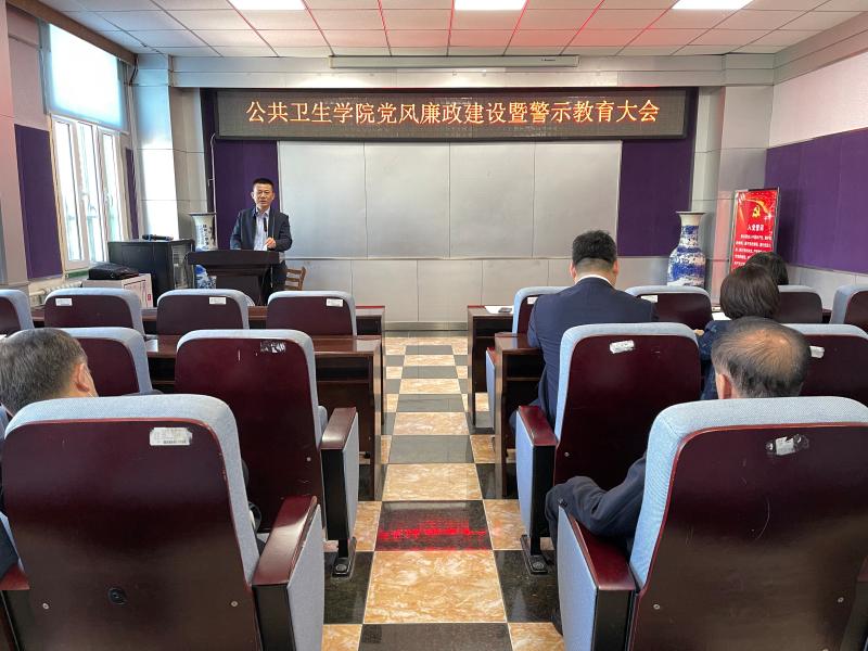 2021年5月17日下午,公共卫生学院党委在学院三楼报告厅,召开党风廉政建设暨警示教育大会。学院领导班子成员、“两委”委员、支部书记、系、科主任、三委会主任、全体行政人员参加了本次会议。会议由学院党委书记赵国利主持。