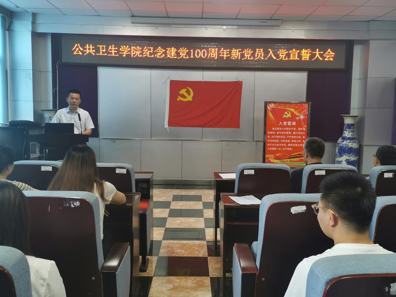入党宣誓会在庄严而又神圣的《国际歌》中拉开了帷幕。首先由陈强老师致辞并宣布新党员名单。随后,便是激动人心的宣誓环节。“我志愿加入中国共产党,拥护党的纲领……”在苏国范老师的带领下,全体党员举起右拳,面对着党旗庄严宣誓,声音铿锵有力,掷地有声,表达着公卫学子对国之热爱以及对党之忠诚。随后,桂瑞瑞同学代表预备党员发言。作为一名预备党员,本科生桂瑞瑞同学表达了对党的热爱与向往,以及成为一名党员的激动与欣喜。她表态,决心在今后的学习生活中坚定自身信念,提高自身党性修养,不断创先争优,做一名优秀党员。随后,研究生郭垠沛同学作为党员代表进行发言,勉励党员同志们坚定理想信念,铭记党员使命;加强理论学习,提高党性觉悟;勇于争先创优,体现自身价值;坚持严格自律,促进健康发展。