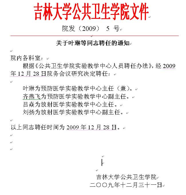 关于叶琳等同志聘任的通知