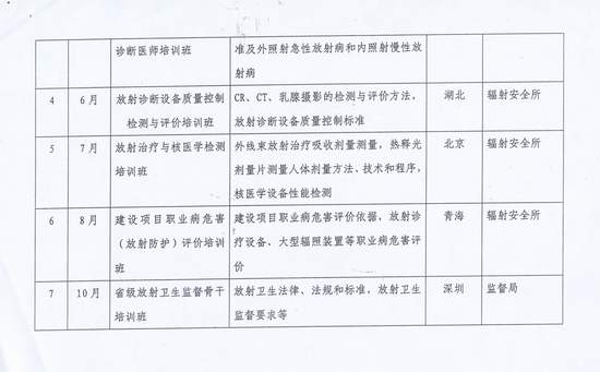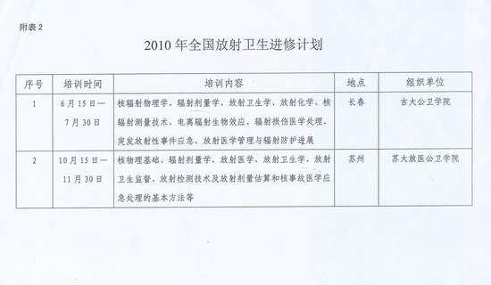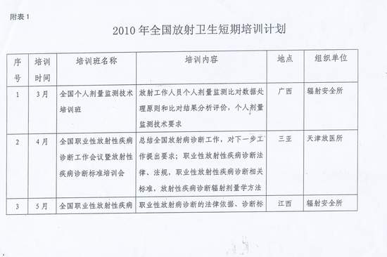 卫生部监督局关于下发《2010年全国放射卫生教育培训计划》的通知