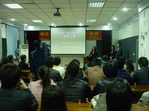 本次活动由两位学生主持人主持。首先观看了预先制作的吉林省抗洪救灾的视频资料,接着李想同学讲述了自己志愿抗洪的经历和感受,使在场的老师和同学无不为之感动,纷纷发表了自己的感想,体现当代大学生积极向上的精神风貌。