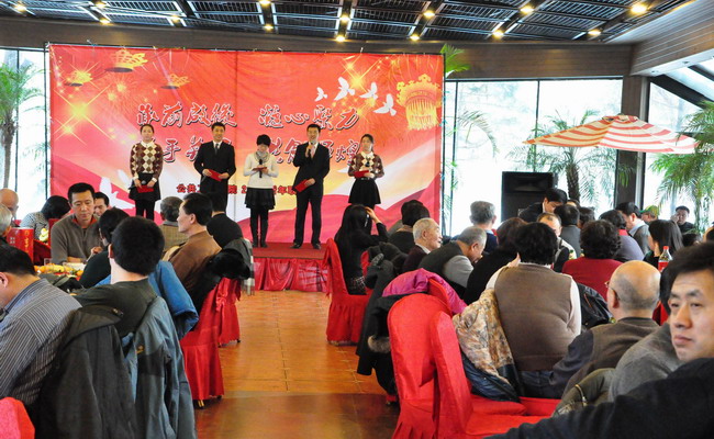 新一任领导班子与大家见面,然后李娟院长做新年致辞,她简单总结了学院过去一年取得的成绩,并对学院新的一年和学院的未来发展进行展望。然后老院长于雅琴教授为新老员工送上节日的祝福。最后,副校长兼医学部学部长王冠军讲话,他认为此次联谊会的主题,反映了学院新一任领导班子对学院今后发展的理念。在送上新年祝愿的同时,王校长向师生介绍了今后医学教育发展的方向和目标,并描绘了医学部今后的蓝图。联谊会的第二部分是文艺汇演,由本科生、研究生和教师同台奉献的文艺节目精彩纷呈,给联谊会的气氛推向高潮。不论是激情高亢的独唱、充满异域风情的阿拉伯舞蹈、京剧反串,还是古筝笛子合奏表演,都让观众掌声和欢呼声不断。一方面体现师生的多才多艺,另一方面也反映了学院校园文化的丰富多彩。演出结束后师生共进午餐。