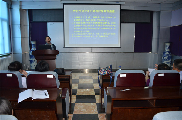 于三楼报告厅对2017级全体研究生进行实验室准入培训,培训特邀请学院放射实验教学中心主任张海英老师、预防实验教学中心主任赵淑华老师、生物安全实验室负责人甄清老师、医学信息实验教学中心邹男男老师分别就辐射安全、化学安全、生物安全、网络信息安全四个方面进行专项培训,此次培训覆盖面广、针对性强,课后利用考试巩固培训效果,使学生时刻紧绷实验室安全这根弦。