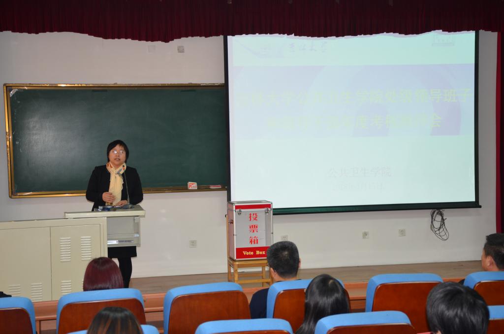 首先,刘雅文院长代表党政领导班子做学院2017年度工作总结。刘院长从党委工作、学科建设与科研工作、本科与研究生教育、推进公共卫生教育国际化、人才引进与培养等方面做了全面总结报告,并对学院近期工作进行了布置,刘院长强调,学院的发展离不开每一位教职工的辛勤努力和付出,希望在今后的工作中,不断激发活力、抢抓机遇,改革创新,开创学院发展新局面。随后,院长刘雅文、副院长于洗河、党委副书记兼副院长、纪委书记刘丽依次作了个人述职。
