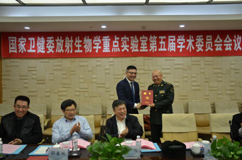 做了一些相关的介绍,而且特别强调了放射医学在学院建设,学科发展等发面做出的贡献,并期望在日后的学科发展方面一如既往的做出贡献。随后由相关领导颁发了学术委员会委员聘任证书。