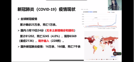 讲座中,甄清老师从新冠肺炎疫情流行现状、高等院校新冠肺炎防控方案基本要求、卫生防护和预防性消毒四个方面进行了知识普及和专业解读,并重点培训了高等院校开学前、开学后防控措施以及出现疑似感染症状的应急处置方法。这次网络视频直播讲座从公共卫生与预防医学专业性视角传播了新冠疫情防控知识,增强了师生打赢疫情防控阻击战的信心,为后续师生返校复课,主动精准防控新冠肺炎疫情,打下了坚实的基础。讲座取得了很好的效果,师生反响热烈。
