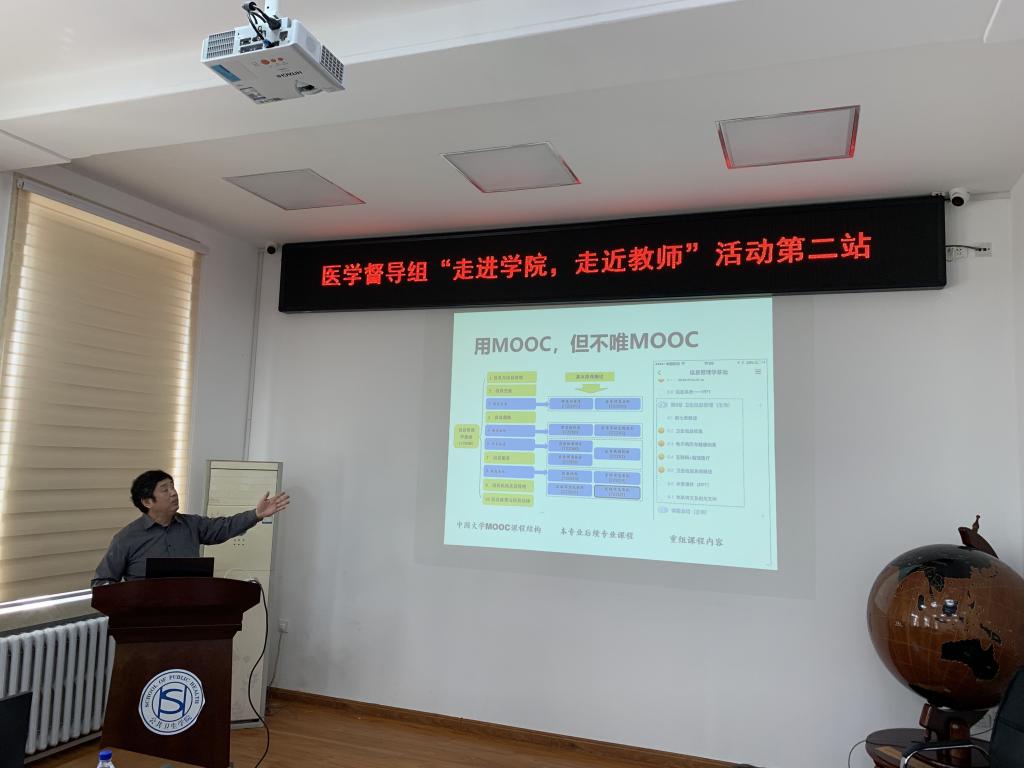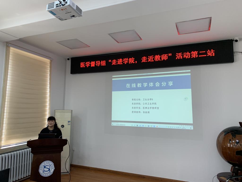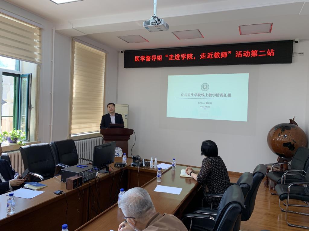 教学副院长寇长贵就2020年春季学期在线教学总体情况、学生到课情况、教学效果、学院督学检查教学情况、存在问题及线上教学工作安排进行汇报。寇长贵、王伟、杨淑娟三位老师分别汇报展示了《预防医学》、《信息管理学基础》和《卫生法学》课程的在线教学经验和体会,涉及课程内容整合、在线教学资源平台建设与有效利用、课程思政元素融入教学、在线教学模式创新等内容,受到校教学督导专家们的关注与肯定,并就学院专业建设、课程建设和教学改革等多个方面提出指导意见和解决思路,对学院未来的教学和人才培养工作提出了更高的要求。