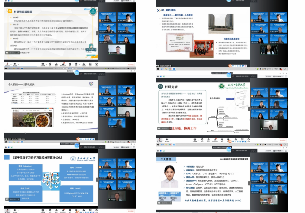夏令营于6月10日8:30正式开始,主要分为学院及学科介绍、个人学术能力展示、与青年学者线上面对面交流探讨及优秀营员考核四个部分。首先是播放我院招生宣传片,介绍学院特色学科及专业导师情况;然后进入个人学术能力展示环节,营员们通过PPT演讲方式向专家小组展示个人学术水平和专业素养。随后,老师与营员们进行交流互动、答疑解惑。最后,由我院专家小组从综合素质、专业素质和外语听说能力方面对营员进行综合面试,学院根据学生的申请材料及夏令营期间的综合表现打出总分并进行排序,最终评选出19名优秀营员。