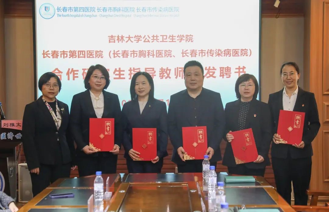 党委书记刘金超、院长刘雅文、党委副书记兼副院长于亮、副院长寇长贵、教学办公室主任李鹏、实践基地联系人刘国良;长春市传染病医院党委书记张皞男、院长曹阳、党委副书记陈彤彤、副院长张健、副院长杨光旭、纪委书记徐立芳出席活动,5名校外合作导师及相关科室负责人参会。仪式由长春市传染病医院张健副院长主持。