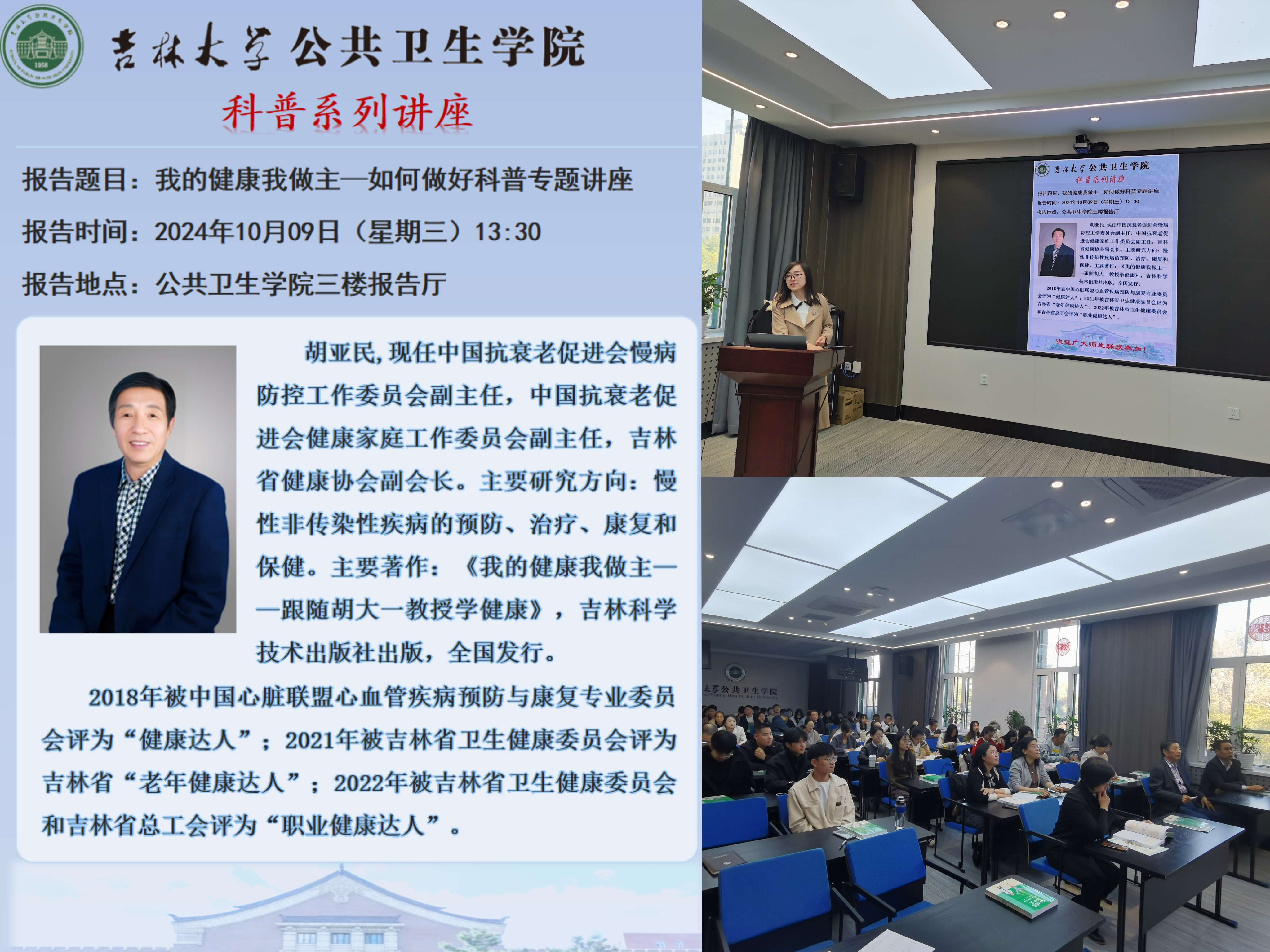 特邀吉林省健康协会副会长胡亚民作《我的健康我做主》主题讲座,为全院师生普及健康保健知识。本次活动由亚洲无码