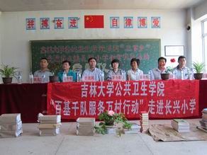 副书记兼副院长于洗河、学院办公室主任魏冬柏、学院学生工作办公室吴晓辉主任、辅导员苏国范、郭倩君,长春市朝阳区教育局扶困中心主任韩凤宝、副主任王东娜、朝阳区疾病预防控制中心主任李为群,乐山镇中心小学书记刘云翱、副书记李淑芹、乐山镇长兴小学校长刘岩、副校长付立国、教导处主任曹海燕出席了此次启动仪式。