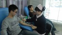 下午两时许,献血志愿者在血站工作人员的组织下有序的开始体检和采血。参加本次献血的志愿者都是我院12级的新生。虽然献血的过程中有的志愿者产生了些微的不适,但是从他们坚定的目光中仍可以感受到他们无私奉献的光荣。在献血之后,一位志愿者对记者说:“我们今天的付出,会换取明天更多人的健康。”血站也为这些献血者们贴心的提供了营养品。志愿者手捧献血证和血屋的工作人员告别并相约明年再见。