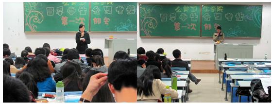 例会主要围绕“总结和展望”展开,即总结之前工作得失,展望未来一年的工作。会议在学生会主席的主持下进行。各部部长及站长依次上台概括本学期开学至今的主要工作内容并总结不足之处,大体规划一下日后的工作以及需要注意和改进的地方。最后,学生会主席兼团委书记王琪进行了总结,并且提出了一些具体的需要改进的地方和改进措施。