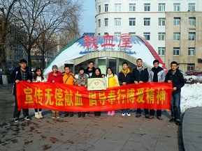 学生红十字协会组织并策划了无偿献血爱心活动。11月23日上午九时,红十字协会成员以及积极参与献血的公卫志愿者们前往长春市中心血站的献血屋进行无偿献血。