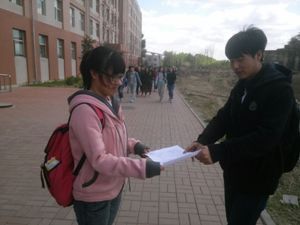 此次宣传活动共分两个部分。首先是由男生负责悬挂宣传条幅,;与此同时另一些同学负责发放关于红十的有关知识和精神的传单,意在宣传红十精神,并向同学们认真讲解世界红十字日的由来和红十精神,增进同学们对其的了解,亚洲无码