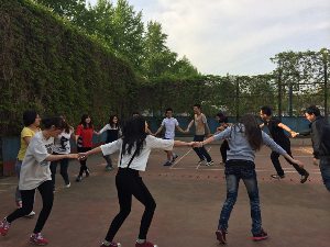 先是由体育委员组织了一场足球比赛,在赛场上大家你追我赶,巾帼不让须眉,女生代表队更是连进两球。在随后的一个半小时的时间里,体委又组织同学们进行了多项体育运动,如丢沙包、老鹰抓小鸡等儿时的运动小项目更是深得大家的热爱,活动气氛异常热烈。