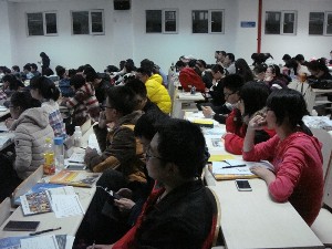 讲座开始,英语老师首先结合自己的经历阅历为大家讲解了英语学习的重要性,由此引申出大学应怎样学习规划的问题。随后,老师又为同学们普及了四六级、托福、GRE等重要英语考试的相关知识,让同学们对大学期间的英语学习有了初步规划。此外,老师还就国外的学习模式、就业情况等常见问题做了详细介绍,为准备出国游学的同学开拓了视野。最后新东方老师还为大家播放了视频和ppt,通过其中优美新奇的异域风光,鼓励同学们走出校门、走出国门、多经历、多见识。