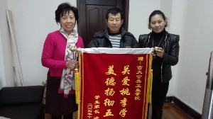冷艳梅同学之前在参加校区活动时,不幸受伤。院领导与老师们在第一时间探望,同时号召广大师生为她献爱心,募捐筹集治疗费用,术后还去慰问。这些都被冷艳梅的父亲看在眼里,记在心里。送锦旗时,冷艳梅的父亲不停地向老师们表达内心的感激之情,老师们都将这些视为自己的责任,并询问冷艳梅同学的身体康复情况,还告诉冷艳梅父亲若有什么困难,学院定会尽最大所能相助,并祝愿冷艳梅同学早日康复。