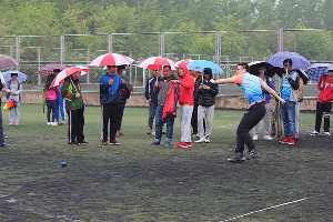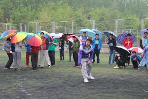 本场比赛运动员分为两组,上午9时30分,参加男子学生组胶球掷远决赛的运动员前往检录处检录,之后统一在工作人员的安排下带到比赛场地等待上场。尽管天气阴冷且小雨霖霖,亚洲无码