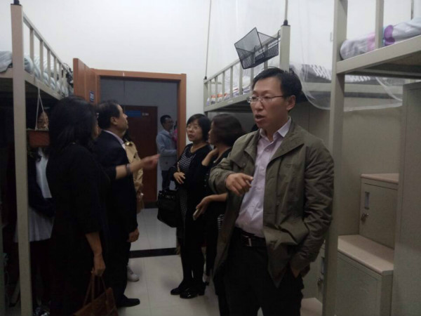 院长李娟,学院党委书记钟绍峰,学院副院长于洗河、副院长刘雅文,党委副书记兼副院长兼2014级辅导员刘丽、2012级辅导员郭倩君老师与2015级辅导员苏国范老师集体来到中心校区,于北苑二公寓、南苑二公寓对2015级亚洲无码