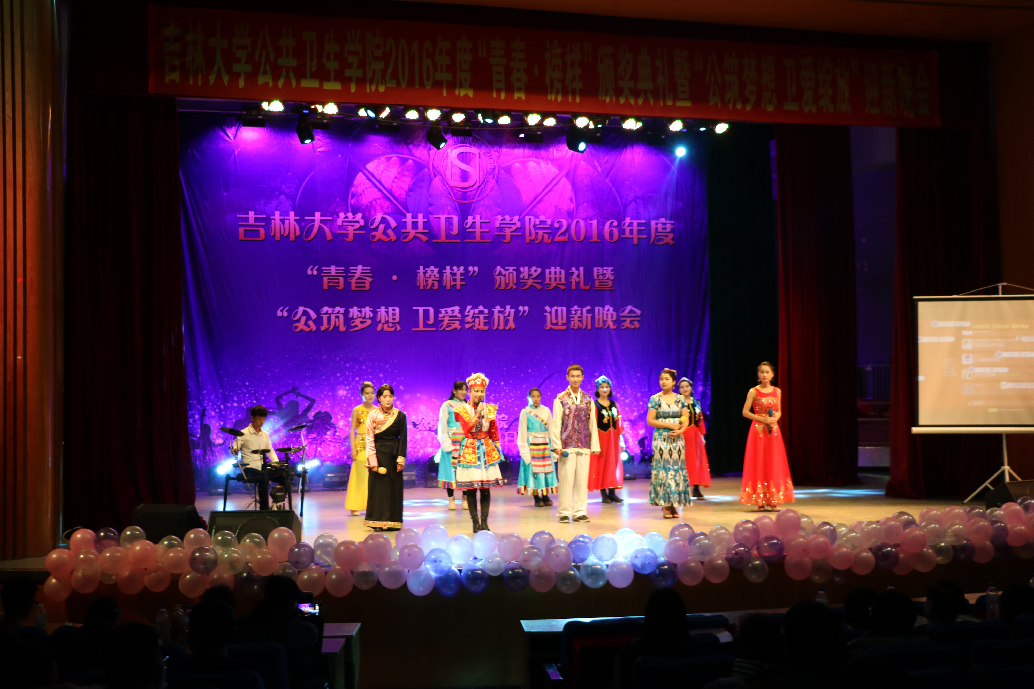 2016年度“公筑梦想 卫爱绽放”迎新晚会的高潮。整场晚会呈现的节目精彩连连:歌曲《陪你一起看草原》和民族歌舞串烧《喜欢你》为观众呈现了多姿多彩的民族文化,营造出民族融合、共同进步的和谐盛景;诗歌朗诵《祖国,我亲爱的祖国》字字铿锵有力,句句掷地有声,唤起了同学们深藏心底的爱国情怀;搞笑喜剧《大话公卫》更是以幽默风趣的台词介绍了学院的现状、学科的发展前景以及同学们的校园生活状态;《大学生活》是同学们精彩演绎的视频配音作品,表演方式新颖独特,引起了现场观众的共鸣;歌舞《恋人心》和《告白气球》利用流行元素,烘托出同学之间浪漫的情愫,展现出公卫学子的青春与活力;《相亲相爱》是亚洲无码