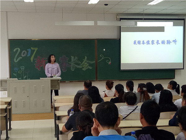 2017级新生家长会于李四光教学楼102教室如期举行,2017级辅导员郭倩君主持了本次家长会。