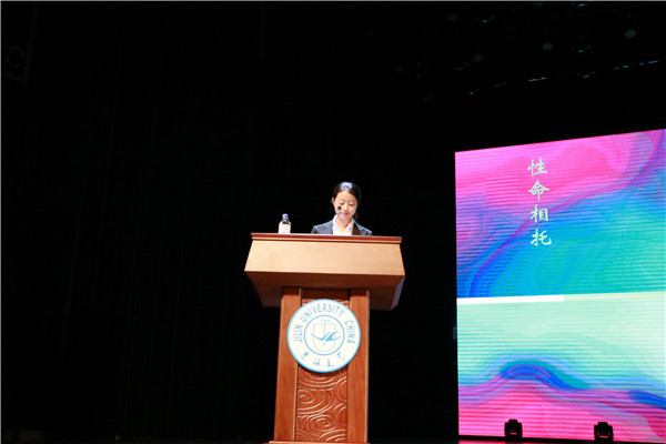 微电影环节暂时告一段落后,白求恩医学部五个学院的学生代表,对“筑梦白医,寻根之旅”暑假社会实践进行了总结。我院33届团委副主席由婷婷,作为学院暑假社会实践的代表,带大家重温了假期在白求恩的学校收获的精神与感动,获得了老师与同学们的热情响应与肯定。