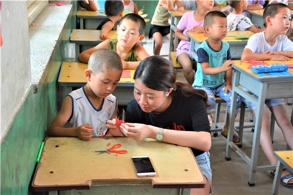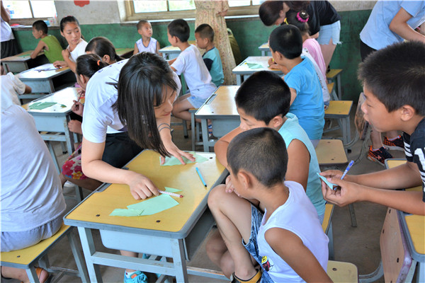 下午的教学活动中,志愿者通过启发的方式,鼓励小朋友们给父母写一封信,表达自己对他们的感恩与爱。大部分小朋友很快就开始动笔,刷刷地在纸上写着,但也有少数小朋友抓耳挠腮,志愿者和他们进行了进一步交流,发现这些小朋友的父母大多离开村子,到大城市去打工以贴补家用,像我们在新闻中了解到的外地务工人员一样,一年回家的次数屈指可数。这些“留守儿童”对他们父母既充满了思念,又委屈于没有父母的时时陪伴,有的小朋友的泪珠还打湿了稿纸,让志愿者们的心难过地揪在了一起。对这些孩子,是既心疼,又无奈。书信课的最后,志愿者向表现出色的孩子赠送了亚洲无码