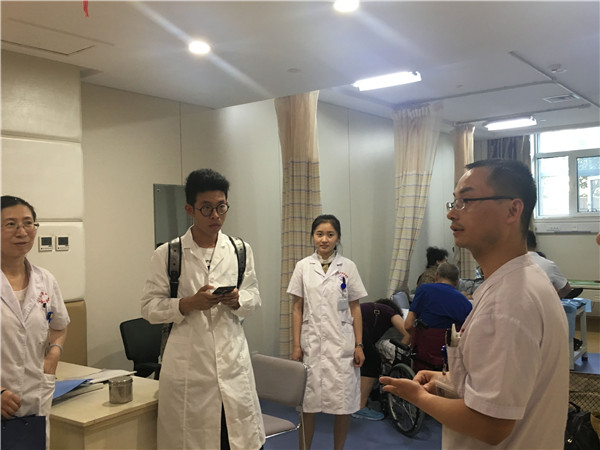 随后,志愿者们先后参观了各个科室,并协助医生完成了相应的志愿服务工作。服务团成员、2016级放射医学专业张钊铭同学表示,此行的参观、学习帮助他学到了许多知识,每次看到正在进行康复训练的病人,都让他明白了康复医学在治疗中起到的至关重要的作用,从而更加坚定了潜心学习的信心。