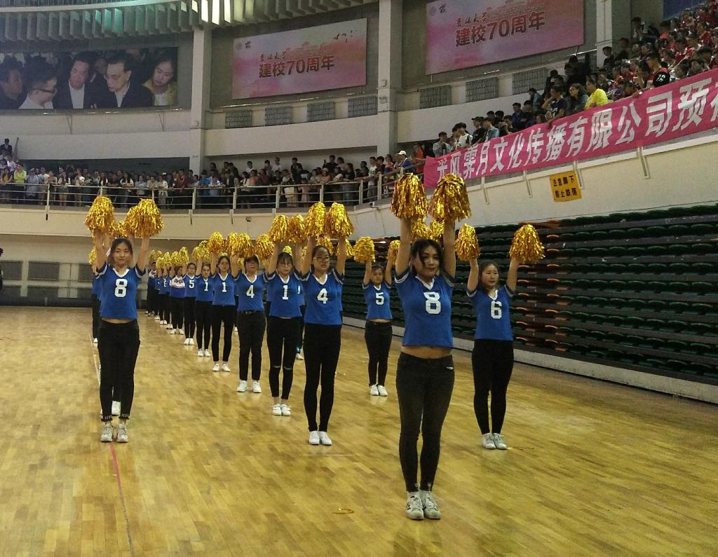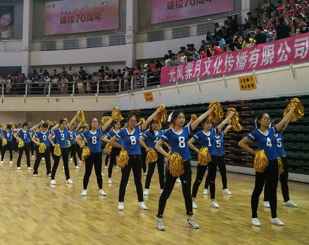 于第一组出场,我院选手身着深蓝色上衣,手持金色花球,一个个精神抖擞、气宇轩昂。他们迈着整齐的步伐走进赛场,随着音乐响起,他们动作统一的伸手、抬腿,每一个动作都充满了朝气与活力。他们认真的投入到比赛中,为了同一个目标努力,从面部表情到动作姿态都体现出认真严谨与积极向上的态度。接下来是啦啦操环节,选手们挥舞着手中的花球,踏着激昂动感的音乐节拍,做着整齐划一的动作,将音乐与舞蹈完美结合,诠释了朝气蓬勃的青春魅力。选手们精彩的表演,为观众带来美的享受,赢得了观众热烈的掌声。最终,我院取得了第24名的成绩,比赛圆满落幕。