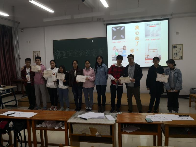 学生会生活部于4月14日晚6时在中心校区李四光楼114教室组织、开展了“和谐校园 安全同行”寝室安全知识竞赛决赛。