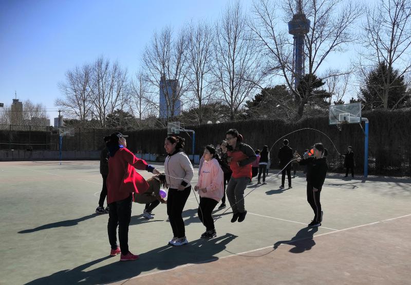 活动伊始,工作人员向在场的参赛同学说明了游戏规则,并将参赛同学分为4支队伍。随后,比赛正式拉开了帷幕。4支队伍首先进行的是“斗鸡”游戏。根据比赛名次决定各队的出发顺序和游戏路线。其中,2支队伍选择了听歌识曲与转呼啦圈游戏,另外2支队伍进行了爱学习和吹气球游戏。完成这两场游戏后,4支队伍通过抽签再次挑选了接下来的游戏路线,一条路线是跳大绳、广播体操、打卡片、编花篮,另外一条是小孩老虎枪、踢毽子、两人三足、编花篮。游戏过程中,各队团结协作、默契配合,队友之间奋勇争先、彼此喝彩,场面十分热烈。经过以上几轮的比拼,趣味运动会渐渐接近了尾声,工作人员们根据队伍完成游戏的先后顺序为各队排出名次,为其颁发了相应的奖品。