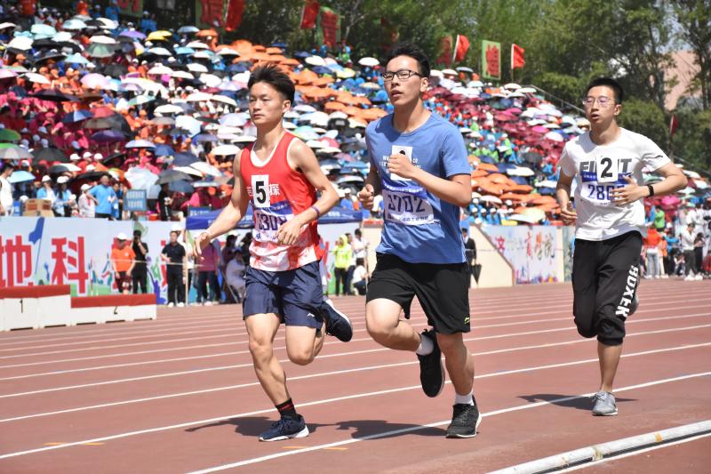 上午9时25分,逐渐火辣的阳光为体育场笼罩上一层热气。在志愿者的帮助下,运动员完成检录、进入跑道。伴随着发令枪响,运动员们如离弦之箭一般向前冲锋。比赛起始阶段,各位选手都保存实力,不贪图一时的名次。800米后,运动员们你追我赶,不分上下,不到最后冲刺的一刻也不知道谁胜谁负。周围的热气与身体散发的热气开始慢慢融为一体,参赛选手们的呼吸也开始变得急促不均,豆大的汗珠不断地穿越脸颊,在塑胶跑道上留下一个个小小的豆印。他不慌不忙,调整步调,逐渐提速。还有500米、200米……终点线越来越近;一个、两个……名次不断提前。最终,他冲过了终点线,脸上露出了欣喜的笑容。最终,亚洲无码