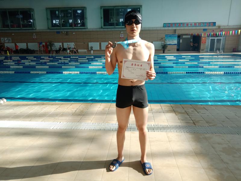 2018级蒋瀚鸿和2019级王淇同学代表学院参加了本次游泳比赛。