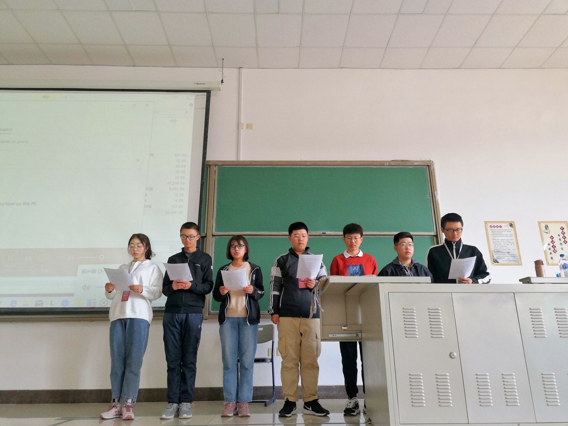 本次班会中,同学们首先通过视频回顾了抗疫中涌现出的伟岸身影,有捐赠1.2万元的环卫老人,有主动请缨驰援武汉的郑杨医生……正是因为这些英雄们,中国才取得了如此瞩目的抗疫成果。同学们被这些英雄舍己为人、无私奉献的崇高精神深深感动。为表达敬佩之情,大家一起用铿锵有力的声音为这些英雄们齐声朗诵《你的样子》。接下来是共战疫情组内讨论环节,在这一环节里,大家以小组为单位,积极讨论,互相交流自己在这次疫情期间的所见所闻所感。最后,全班同学合唱《你的答案》,用充满朝气的歌声唱出自己坚定向前、不惧困难的勇气。本次班会也在合唱声中圆满结束。