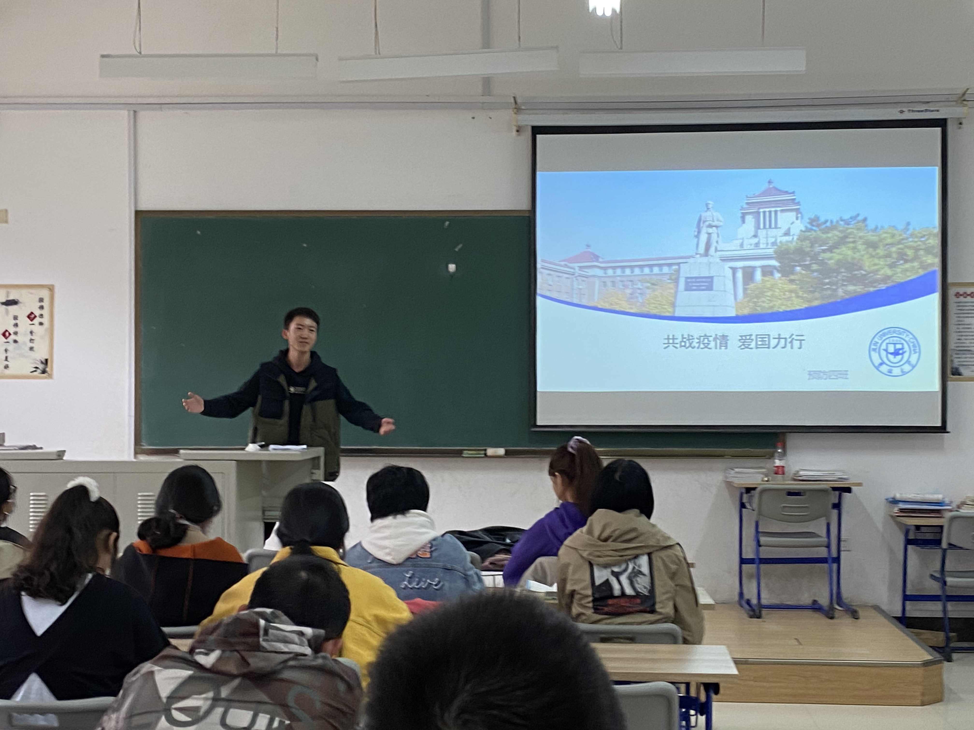 2020级预防四班于中心校区李四光楼108教室举办“共战疫情 爱国力行”主题班会活动,2020级辅导员冷贺璇及2020级预防四班全体同学参加了本次活动。