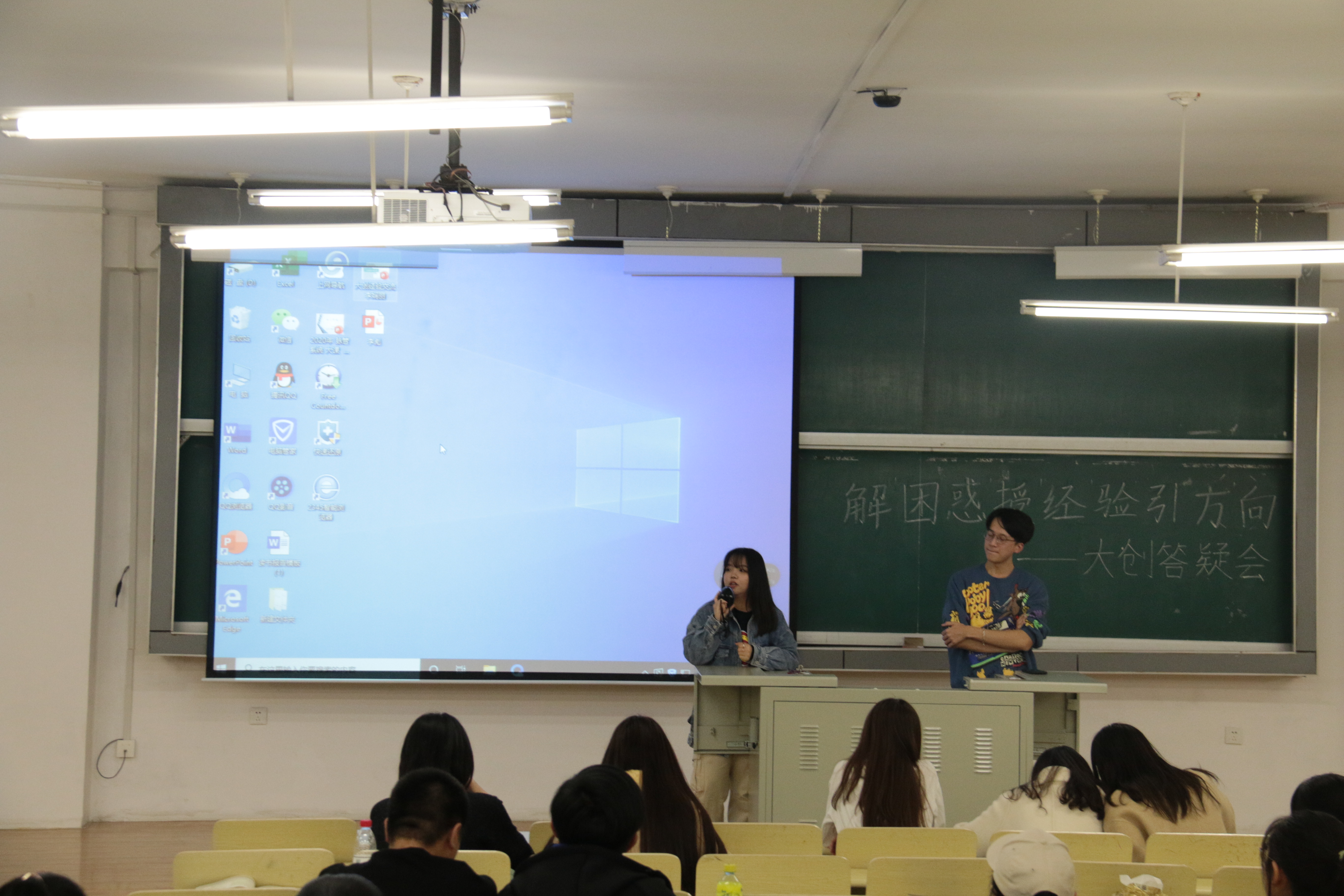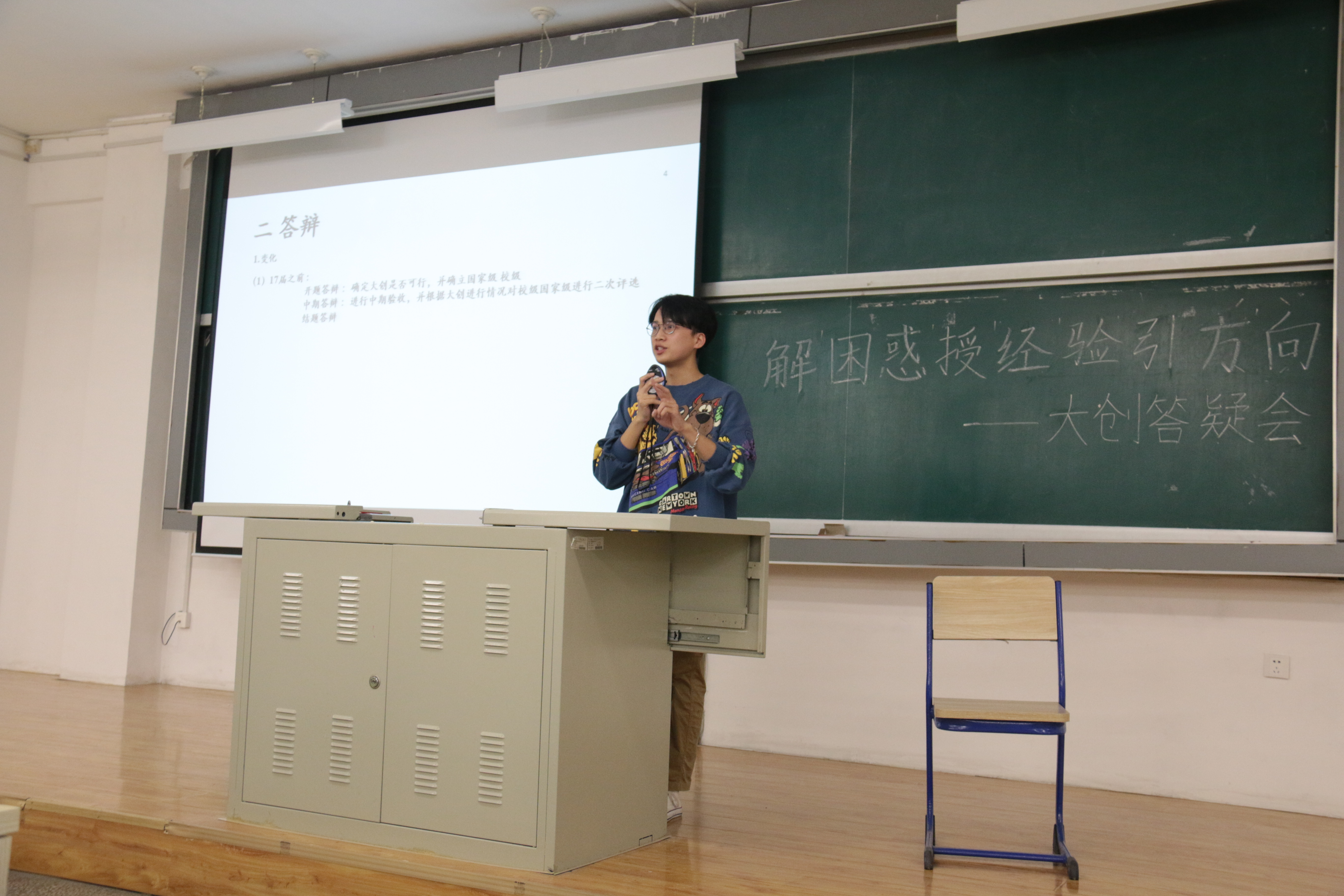 大创经验交流会,邀请了多名2017级同学为大家分享经验,本次交流会由2019级王天怡同学主持。