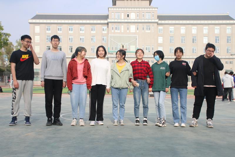 活动分为三大组,即大一、大二、大三依次进行游戏。活动开始,先由各队派选一名同学抽签,决定本队将进行红黑哪条线路。之后,各队分别派选一名同学进行第一项游戏“斗鸡”的挑战,获胜的队伍可以提前三分钟出发。决出胜负之后,两个获胜小组便继续进行下一项的任务。红色线路的游戏依次为“爱学习”、“吹气球”、“打卡片”、“肢体传声”、“跳房子”和“编花篮”;而黑色路线的游戏依次为“听歌识曲”、“呼啦圈”、“小孩老虎枪”、“你画我猜”、“两人三足”和“编花篮”。各小组成员在进行游戏时好像八仙过海,各显神通。有人猜题机敏迅速,有人呼啦圈转得又快又好,有人打卡片一下一个准儿,有人听歌秒识曲……尤其是最后一项“编花篮”,需要同学们极强的团队合作能力,小组中任何一个人出现问题都无法完成游戏。尽管有的同学已经累的满头大汗,但还是坚持了下来。最后,工作人员为大家合影留念,本次活动圆满结束。
