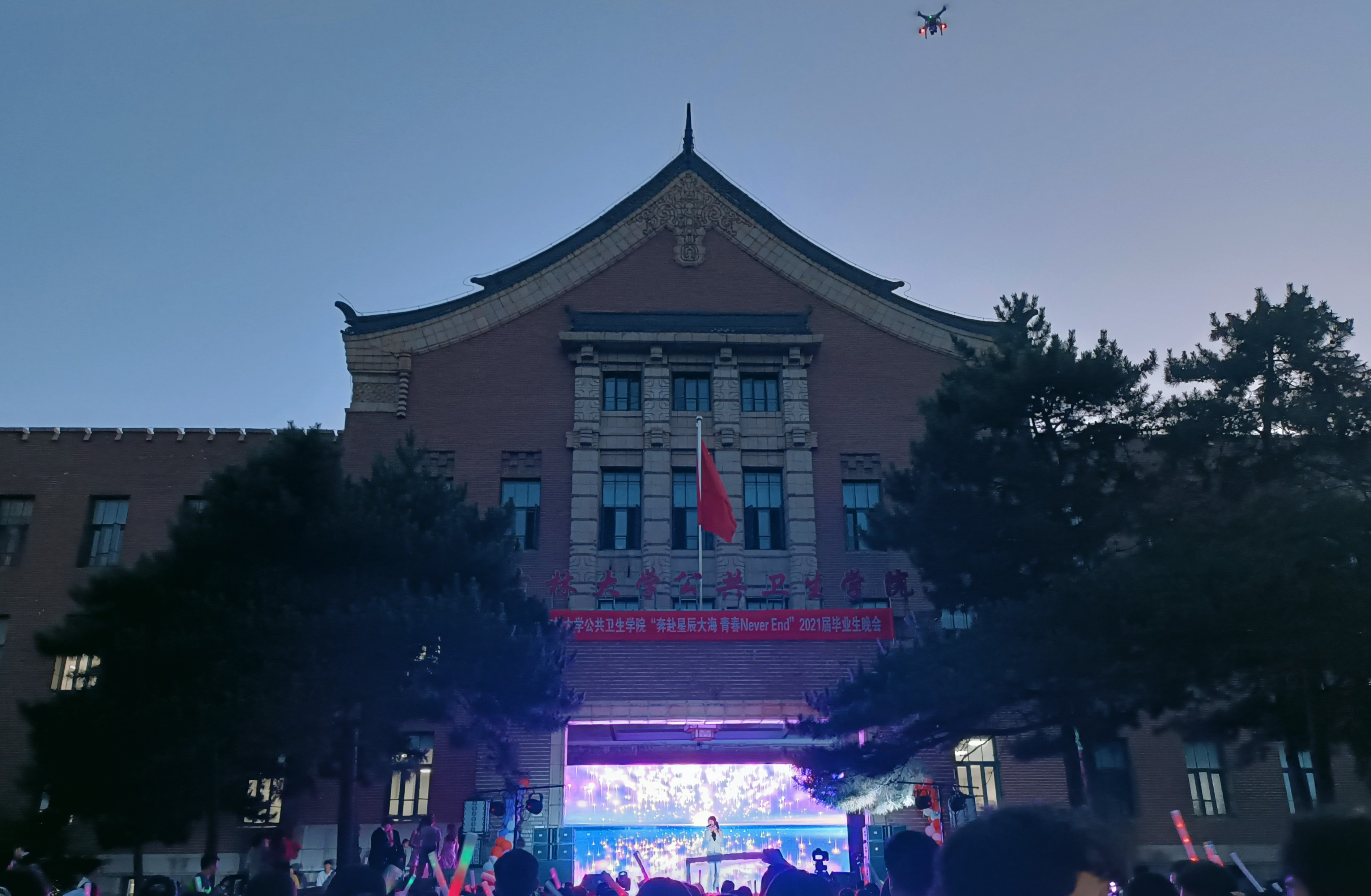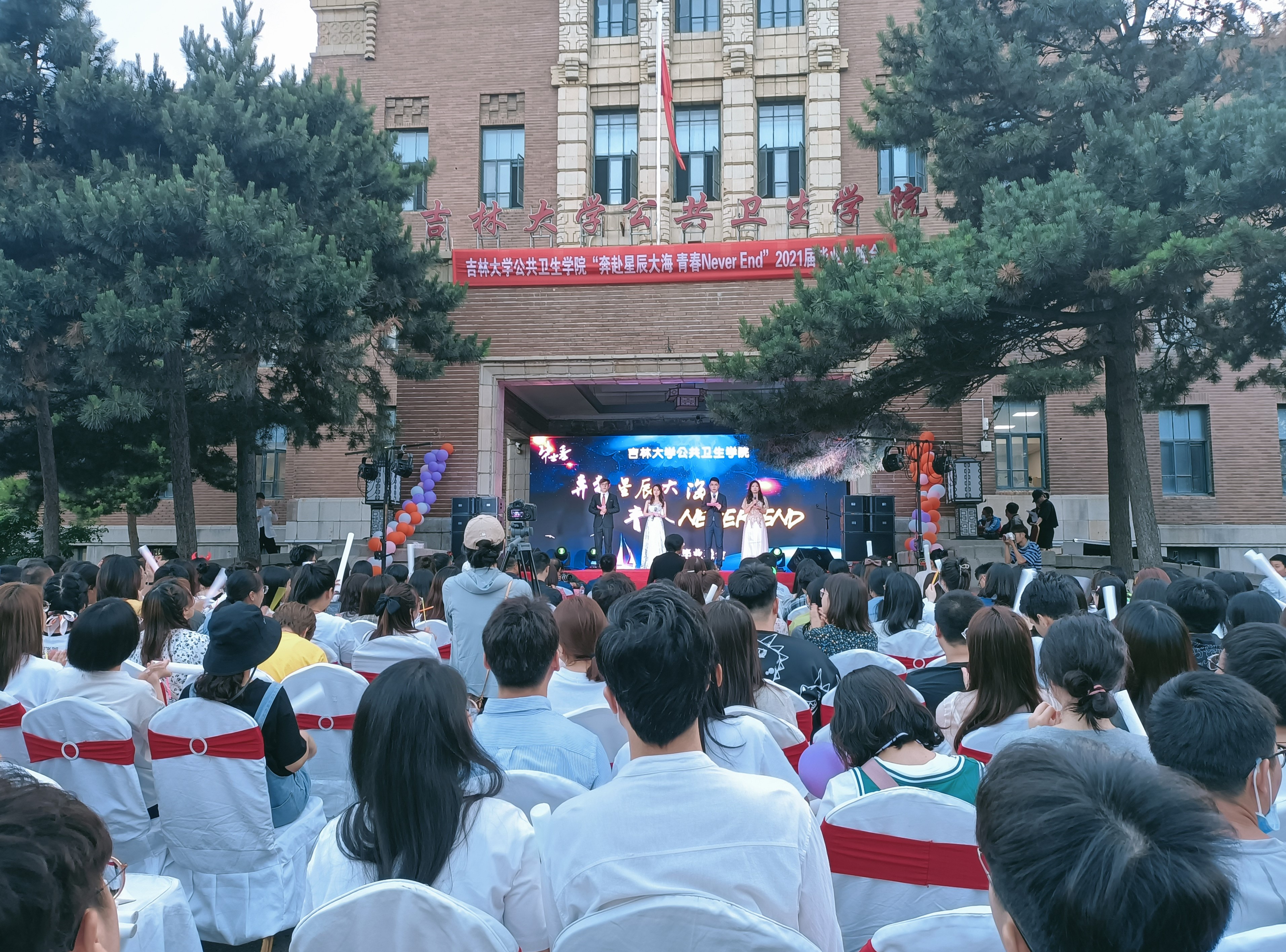 在办公楼前广场举办“奔赴星辰大海,青春Never End”2021届毕业生晚会。亚洲无码