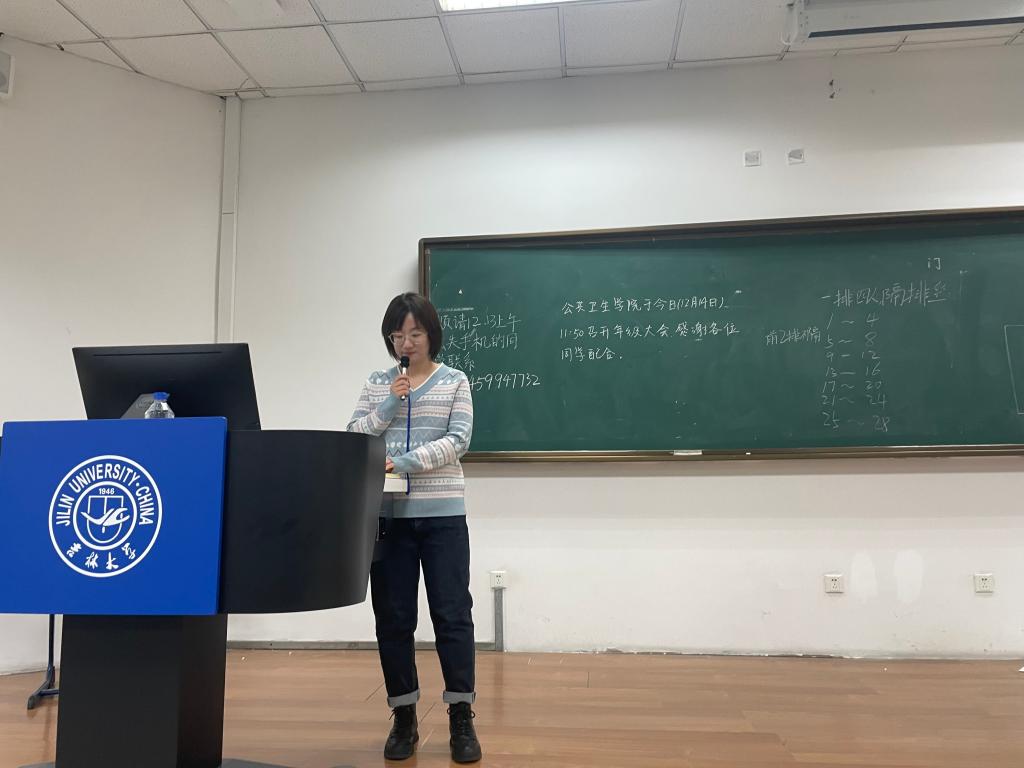 冷贺璇老师首先进行考风考纪教育,强调同学们一定要杜绝考试作弊等不良行为,倡导诚信考试。通过列举真实案例让同学们明白了考试作弊的严重后果和恶劣影响,使同学们加强自身管理,诚信考试,对自己的大学学习生活负责。而后,冷贺璇老师向同学们传达了宿舍安全卫生相关问题,并对学生宿舍安全检查的结果进行了总结,希望同学们能够处理好宿舍卫生,在宿舍杜绝违章电器,保证自身与他人的安全。紧接着,冷贺璇老师提醒同学们在如今防疫常态化的阶段要时刻保持疫情防控的警惕性,每天都要按时打卡,上报自身健康状况,离校需在系统申报审批,离校前检查宿舍门窗,带走贵重物品。最后,冷贺璇老师进一步告诫同学们要努力学习,认真对待每一场考试,注意及时调整自己的状态,提前做好期末复习,争取获得理想的成绩,迎接美好而充实的假期,同时,冷老师鼓励大家思考自己的未来规划,向着自己的目标努力奋斗。