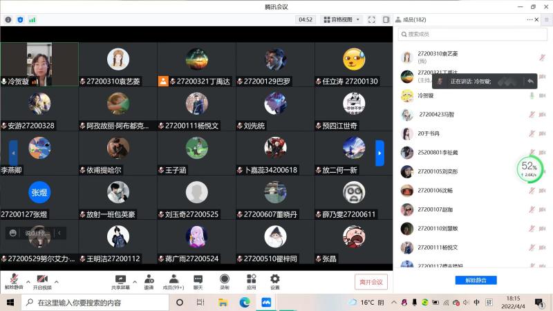 辅导员冷贺璇于4月4日晚九点在腾讯会议召开了“同盼春来,共克时艰”主题年级大会。2017级及2020级全体同学参加了本次年级大会。