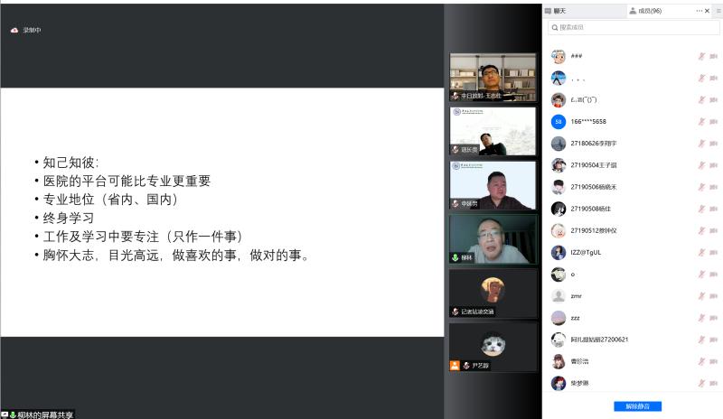 接下来,王教授作为资深的放射医疗工作者,分享了同学们比较关心的薪酬和工作压力等问题,结合所在科室的经历和自身的见解为同学们解开困惑,最后以放射专业读研的建议结束。